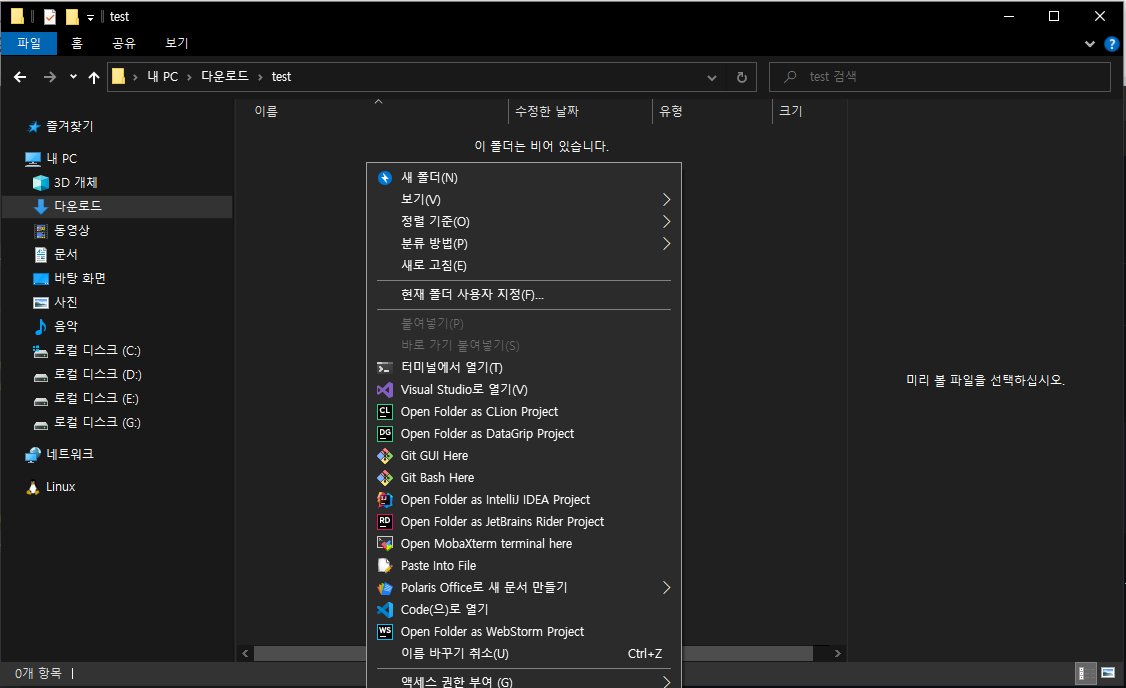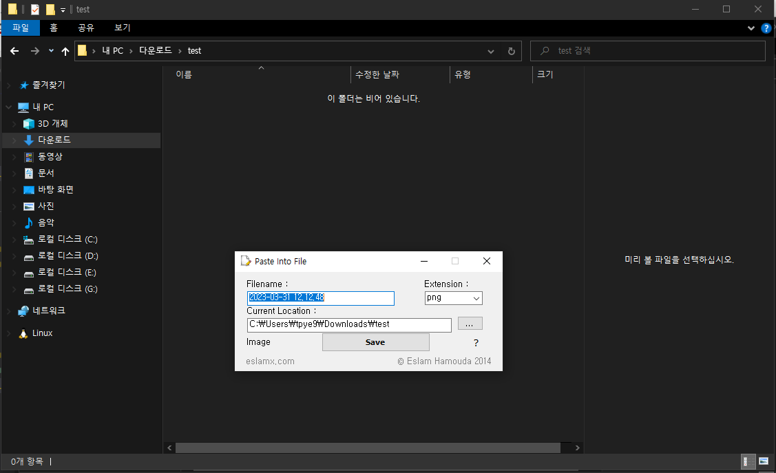 1) 파일을 저장하고 싶은 폴더에서 오른쪽 클릭을 한 후 컨텍스트 메뉴에 있는 Paste Into File 클릭사용법